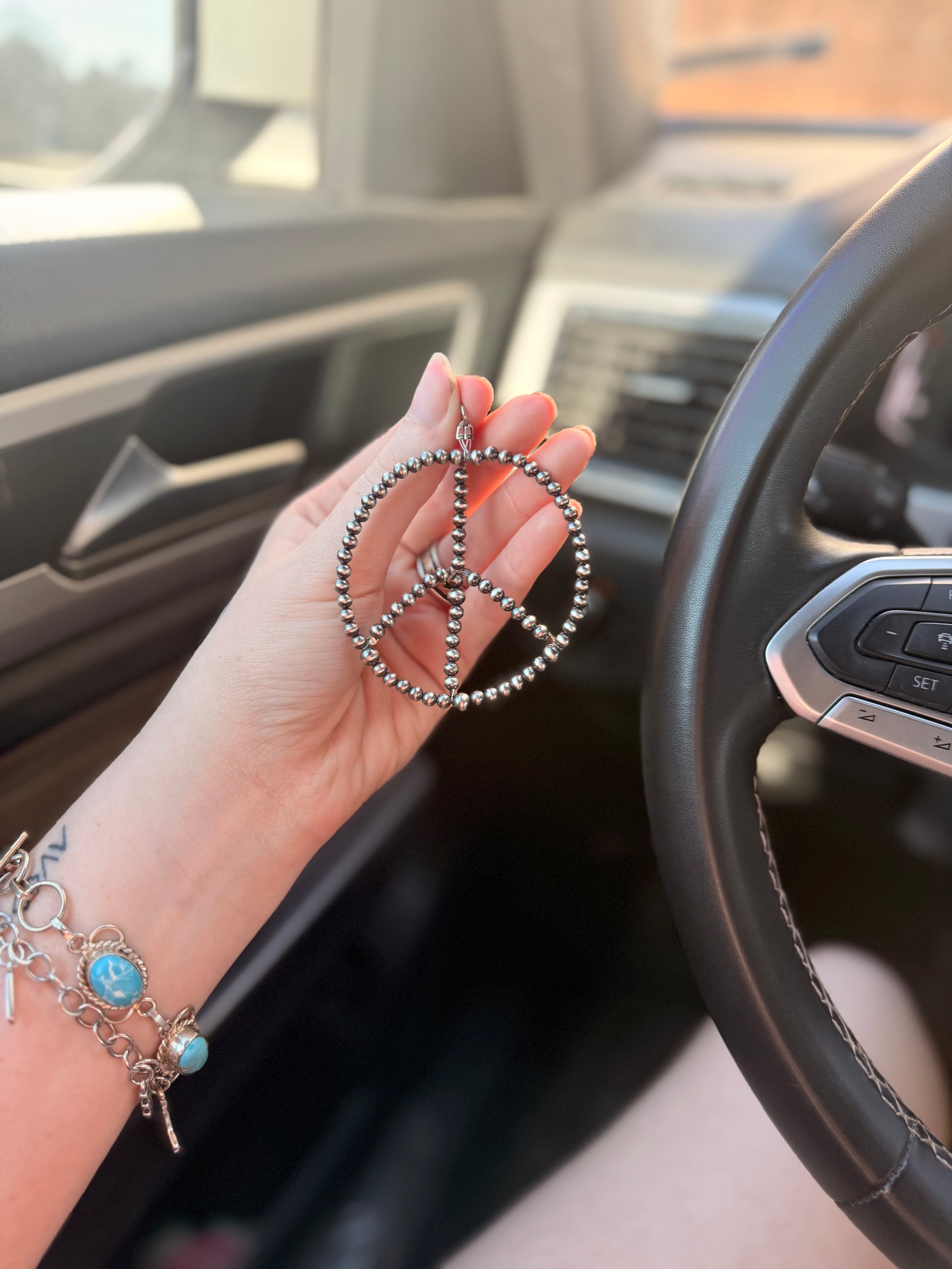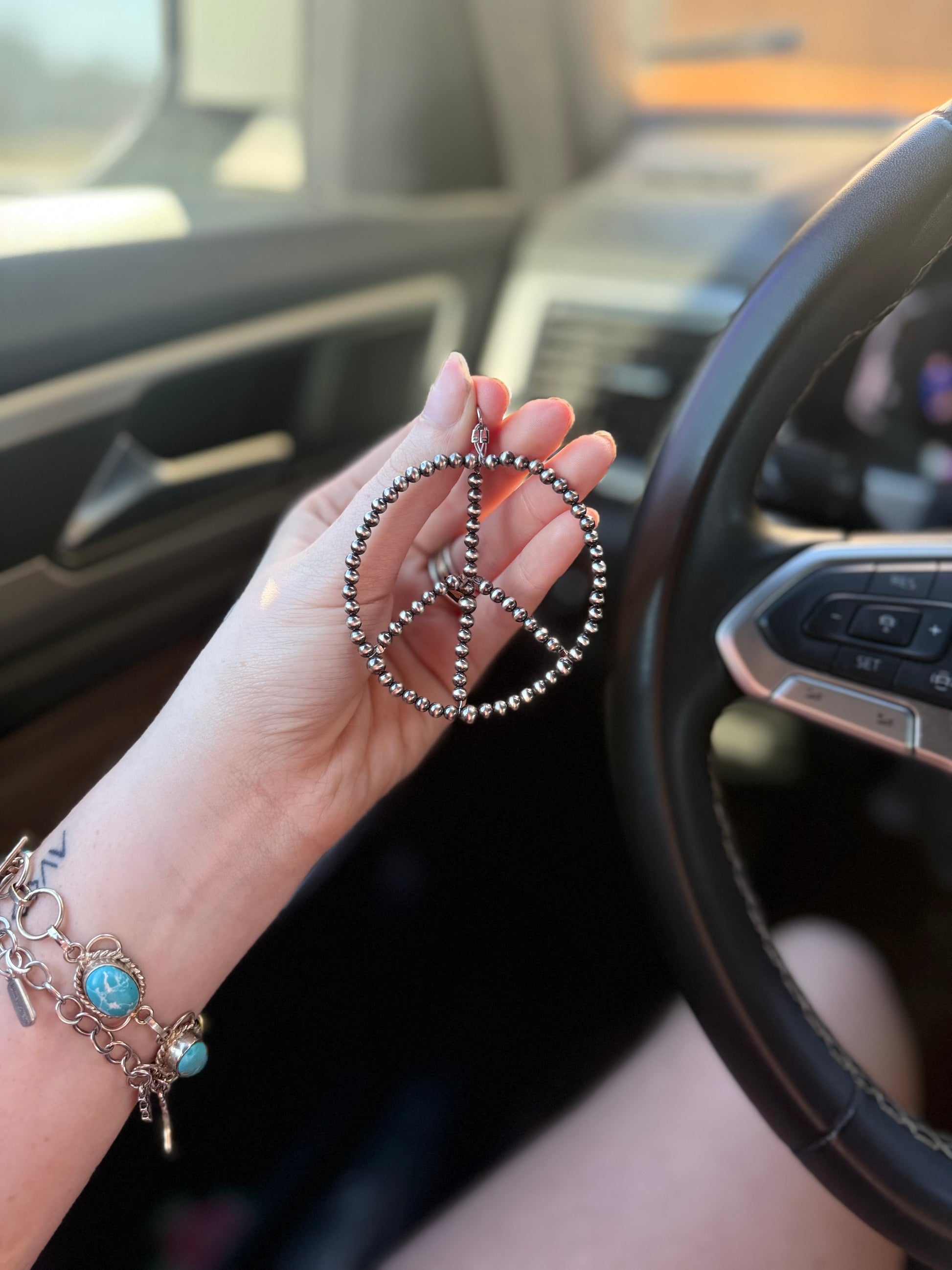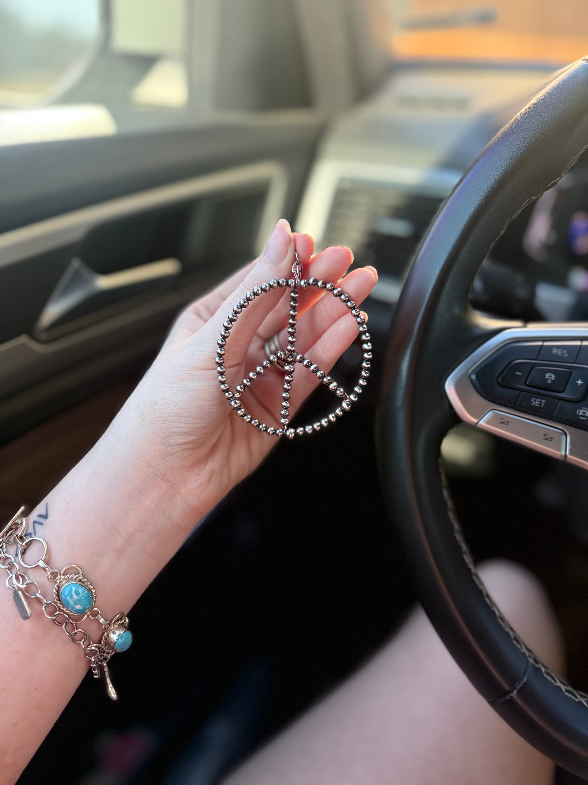 A meaningful touch with a classic western feel. The Authentic Peace Sign Charm features 4mm and 5mm machine-made Navajo pearls, paired with a timeless peace sign design that adds character and intention to your jewelry lineup.